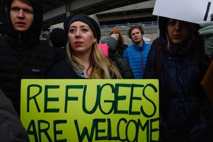 Several hundred people have descended on US airports to protest Trump’s executive order suspending refugee arrivals and banning certain travellers.
