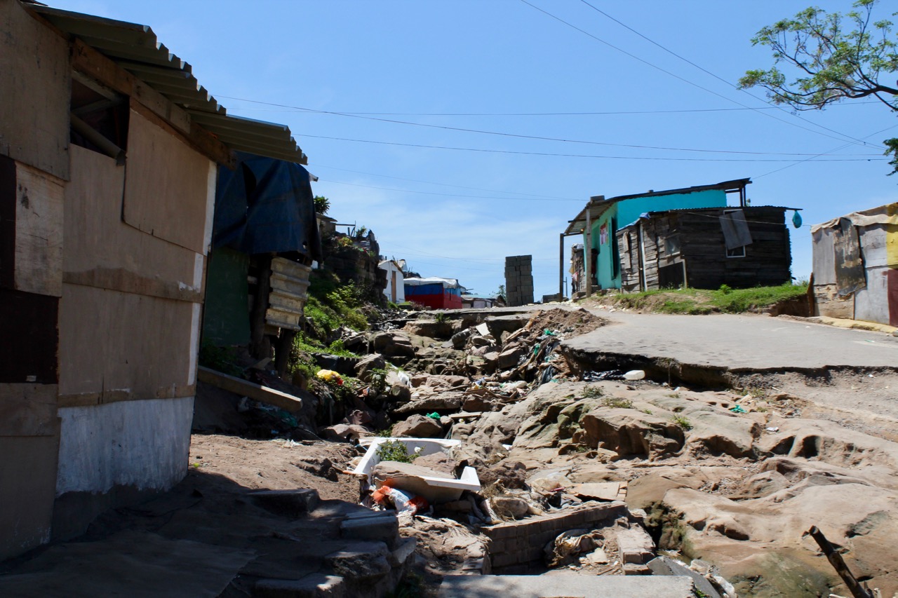 Each section of Bottlebrush has at least one tap and two communal toilets. The road entering the community was swept away by heavy rains three years ago. Waste collection vehicles cannot access the settlement. The eroded area has become a dumpsite. Local livestock, such as goats, drink water contaminated by the rubbish.